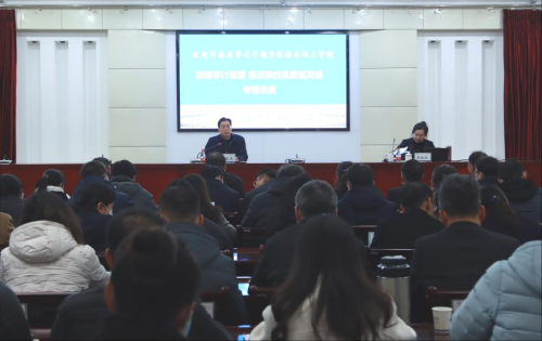 为进一步提升全校干部履职能力,12月6日下午,河南省审计厅财政二处处长郭晓红同志应邀到我校作题为“加强审计监督,促进学校高质量发展”的讲座。讲座在行政楼四楼会议室举行,副校长牛晓玉主持,全校中层干部参加。